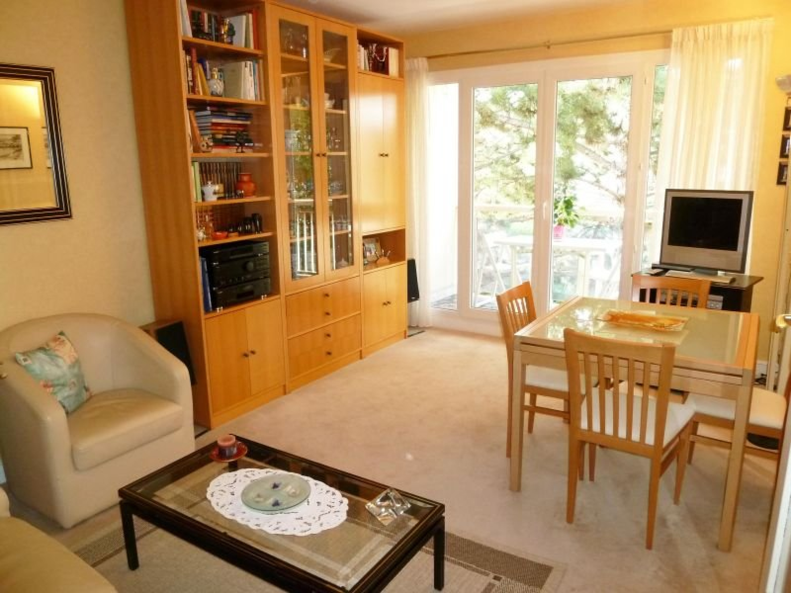 Dans un cadre de verdure, au calme total, dans une copropriété très bien entretenue. Cet appartement, en excellent état, est composé d'une entrée avec de grands rangements, cuisine équipée, salon sur balcon au calme d'un jardin, Wc séparés, salle de bains, deux chambres avec rangements donnant sur balcon. Grande cave, place de stationnement .