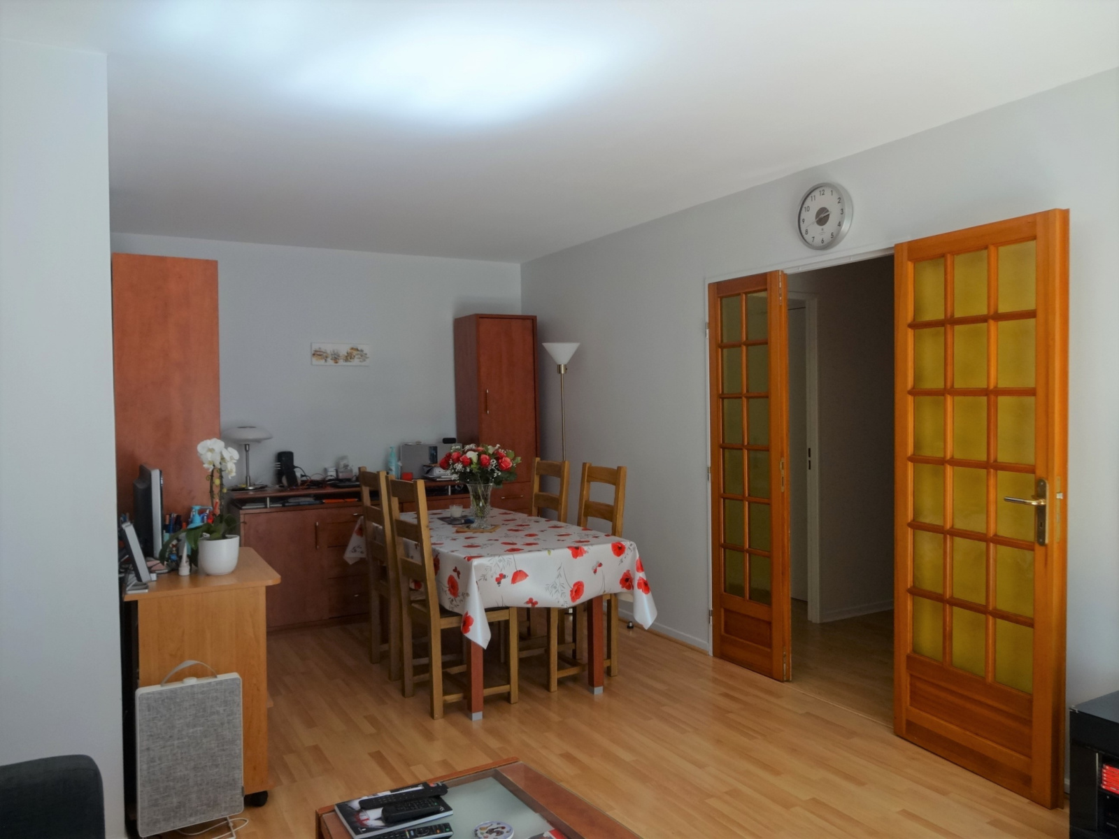 Il se compose d'une entrée, cuisine aménagée, sejour/salle à manger donnant sur un balcon, dégagement desservant un toilette, une salle de bains et 2 chambres avec chacune des placards.