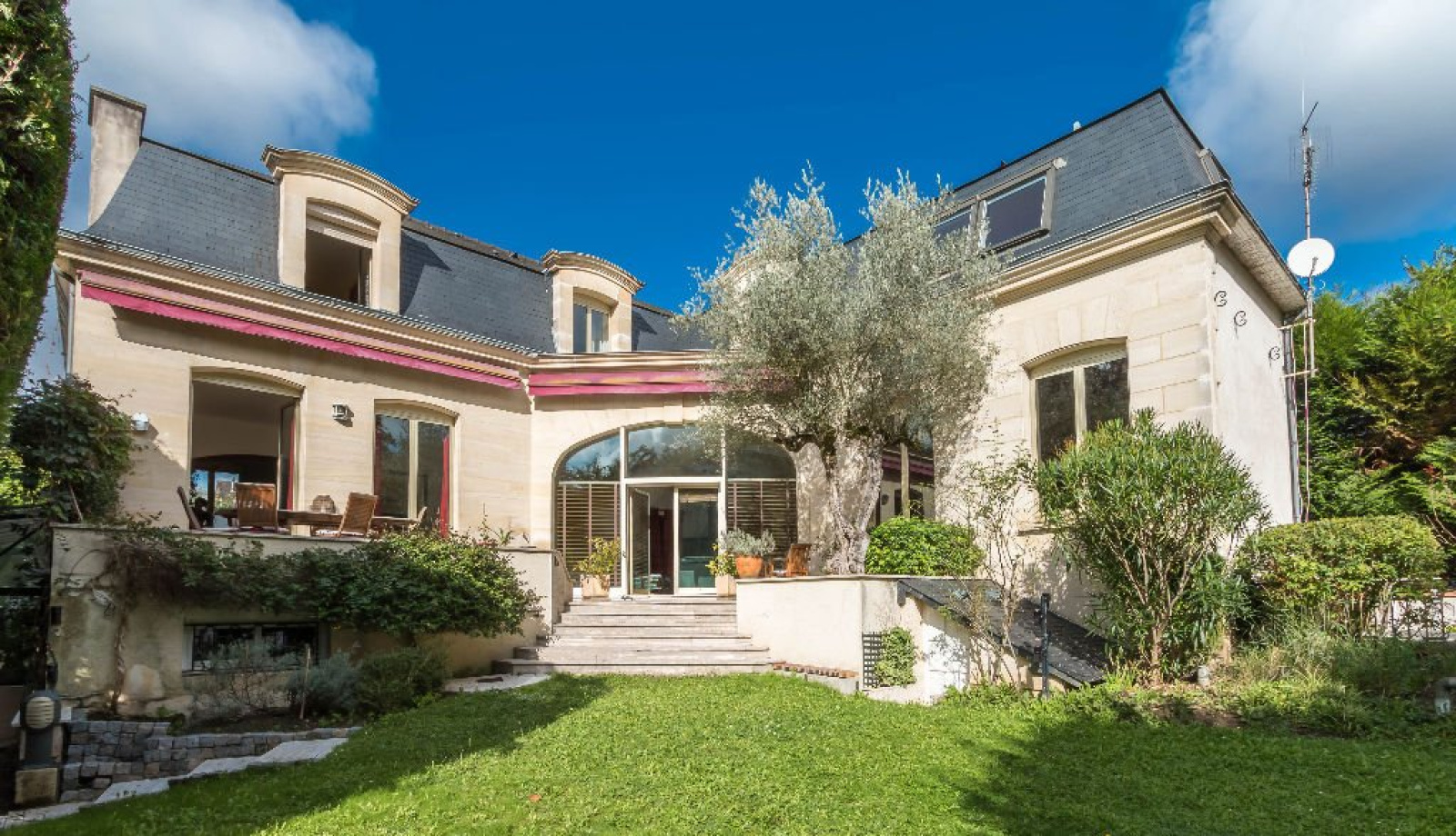 Sceaux - Domaine du parc de Sceaux - à proximité du parc, du centre ville, du lycée Lakanal (et sectorisé collège et lycée Lakanal, du RER, magnifique maison de style Mansart, en très bon état, sur un terrain de 662m², de 310 m² habitables, comprenant au rez-de-chaussée une grande entrée, un espace cuisine équipée salle à manger de 40m², un salon avec cheminée de 56m², tous deux donnant sur la terrasse et le jardin, complétés par une bibliothèque salle de billard et un bureau, un WC; au 1er étage une magnifique suite parentale avec chambre, salle de bains, dressing et bureau; 3 autres chambres, deux autres salle de bains, 2 WC; un sous-sol total avec buanderie, double garage, studio indépendant, salle de jeu, 3 caves; un grand jardin.